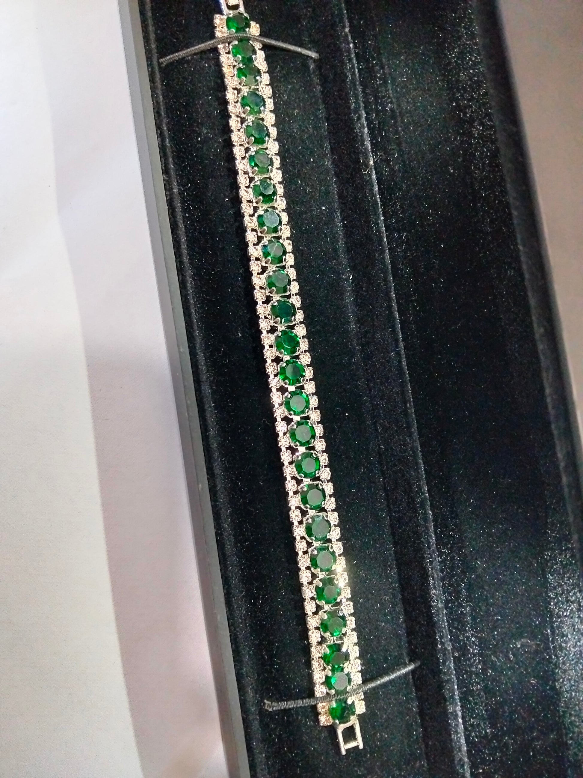π Includes a stunning tennis-style bracelet adorned with vibrant round-cut green stones