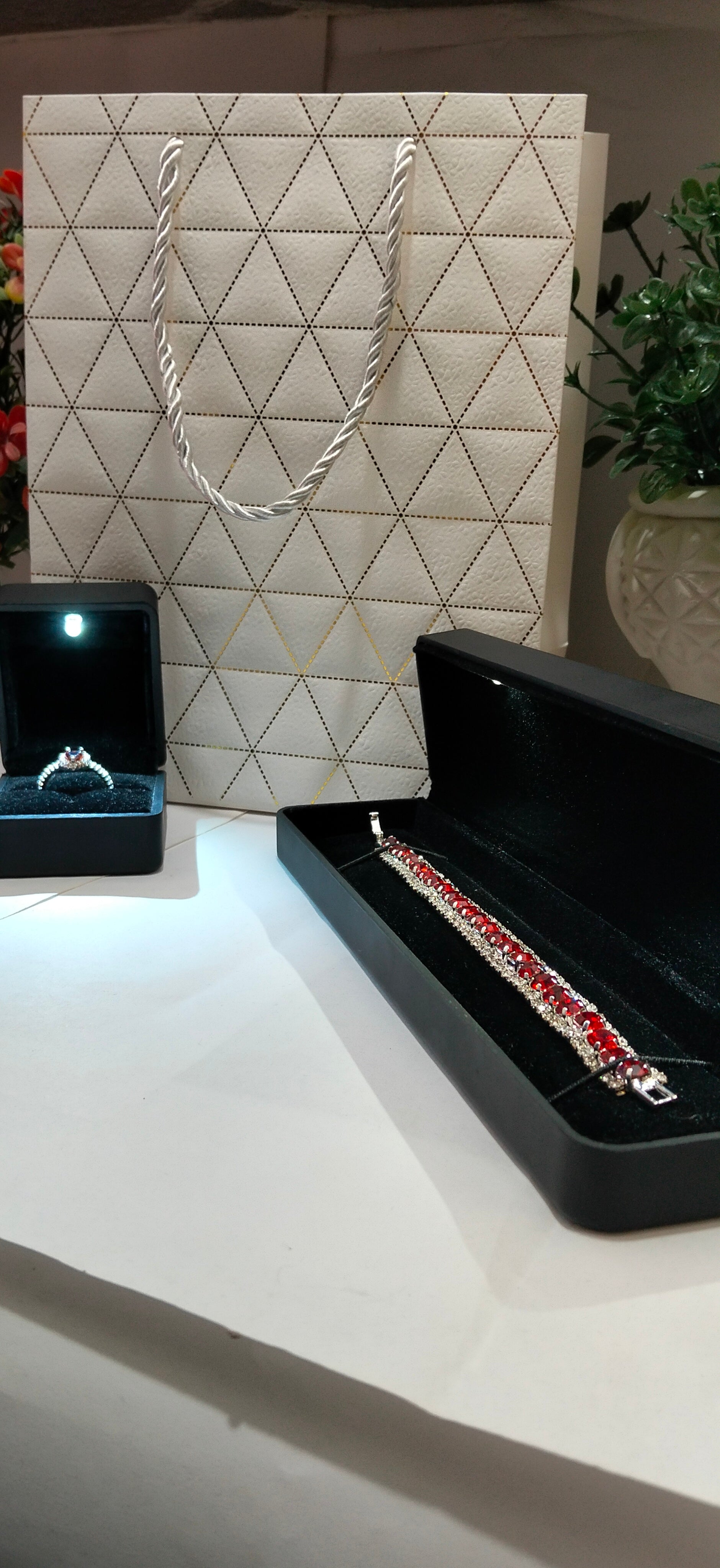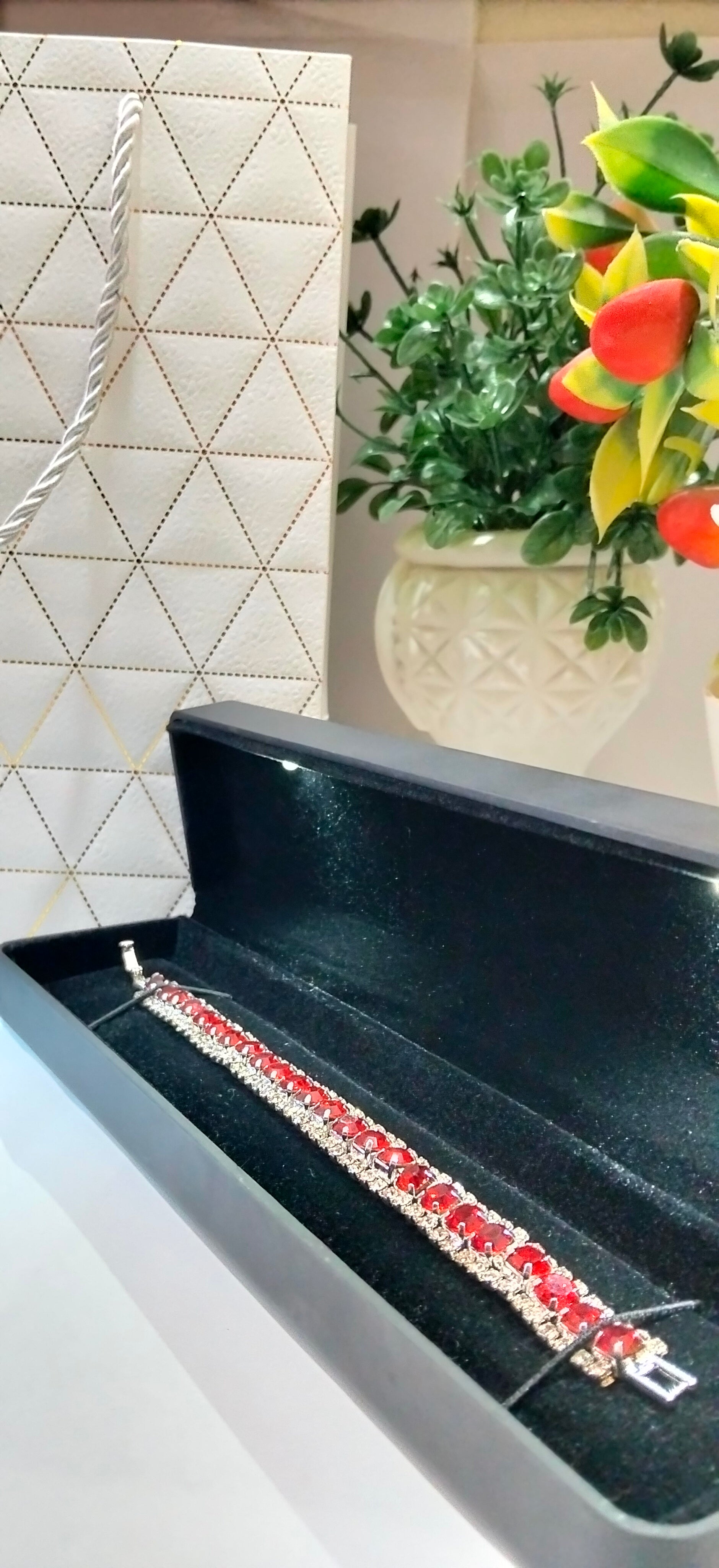 🔥 Ruby Elegance Jewelry Set – Bracelet & Heart Ring ❤️